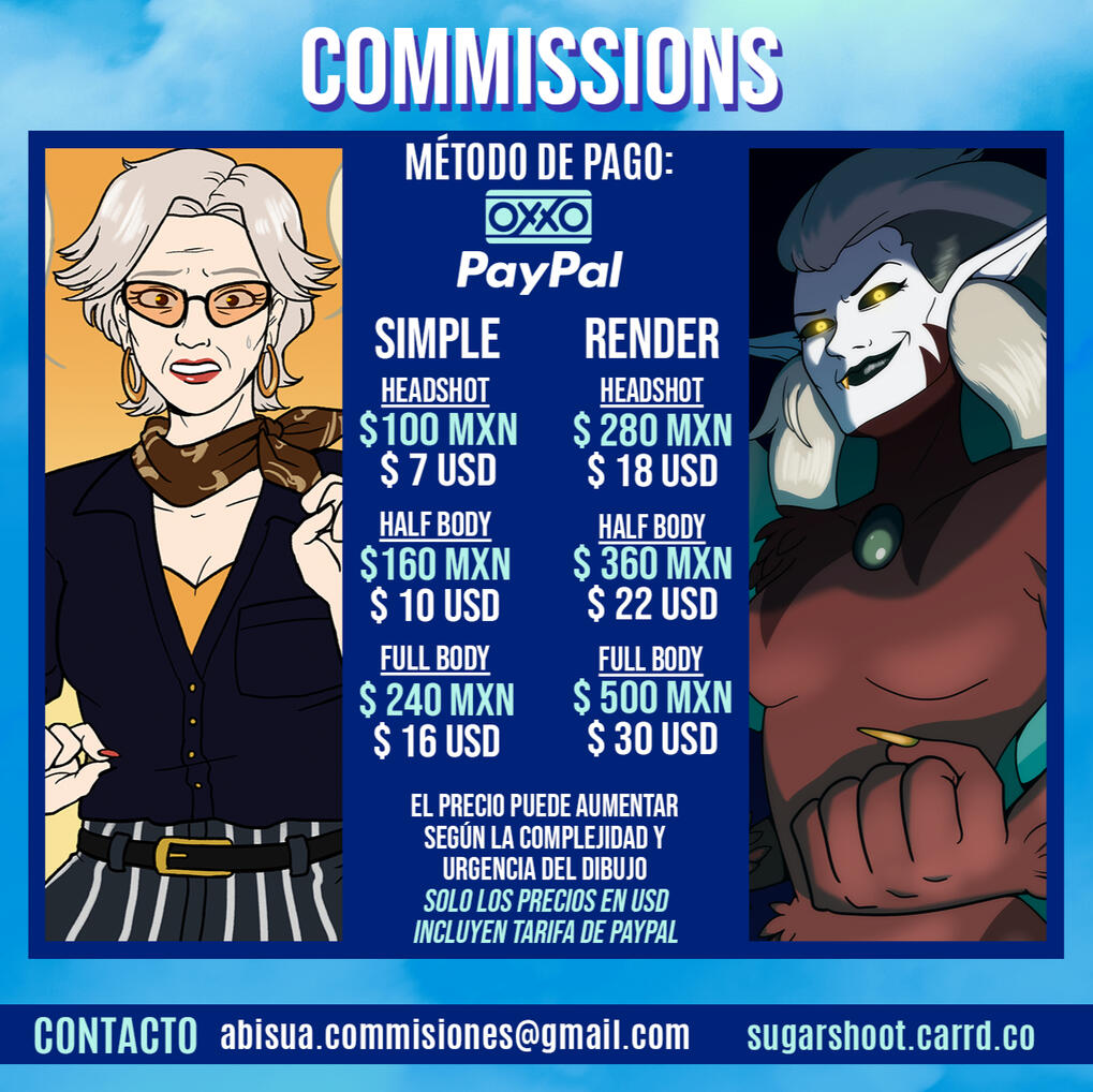 1- Estoy en mi derecho de rechazar tu propuesta si contiene elementos de la lista “no dibujo”, contiene temas ofensivos o la temática sea incómoda para mi.2- Solo los mayores de 18 años pueden solicitar una comisión NSFW. Si sospecho que no eres mayor de edad, estoy en mi derecho de rechazarte.